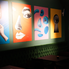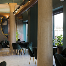 Gli interni del Bullaccia di Brescia, con i colori verde e oro conferisco al locale un'eleganza senza precedenti mentre le suggestive rifiniture e decorazioni di muri, colonne e bancone del bar, richiamano ai fasti passati dei grandi locali europei.